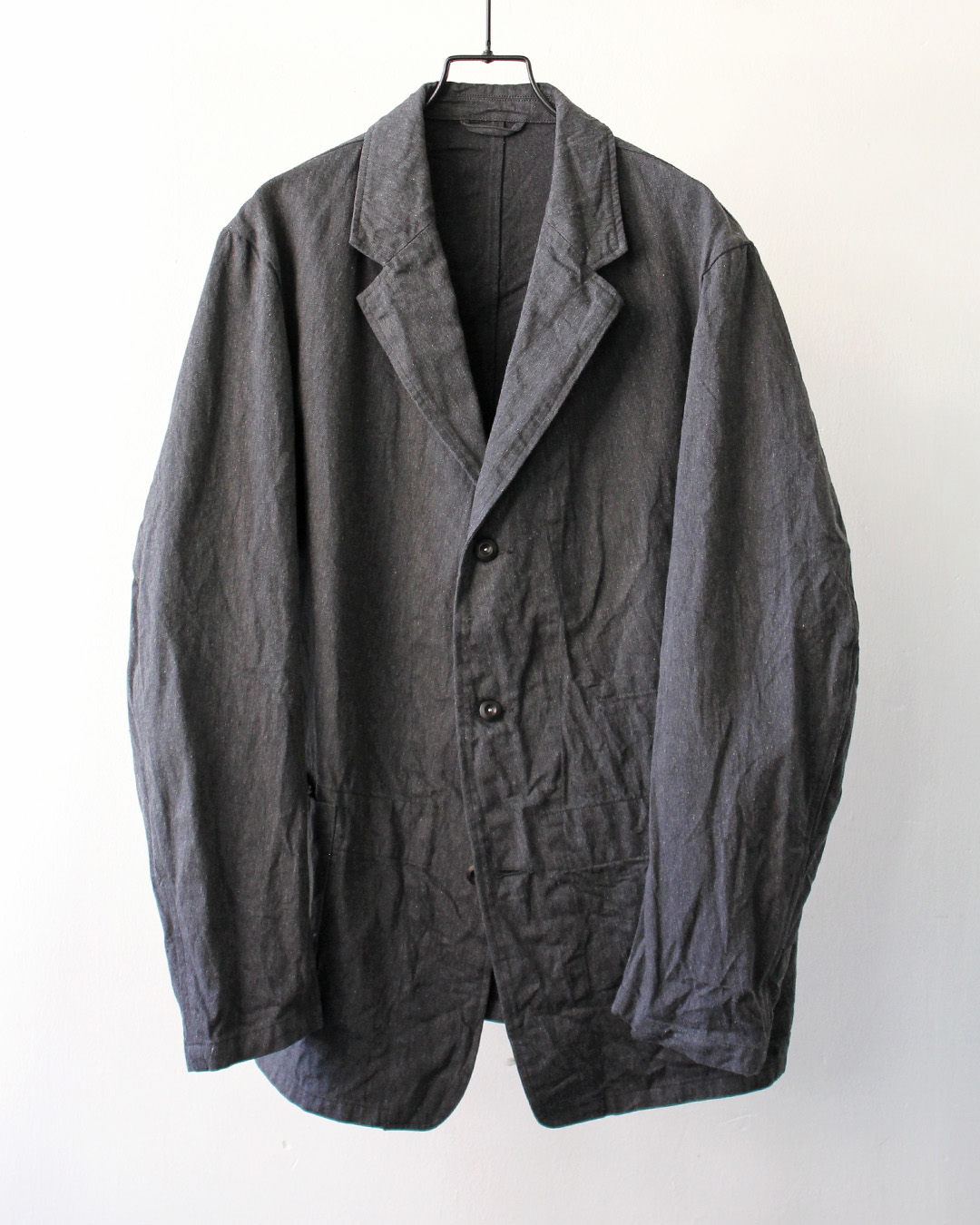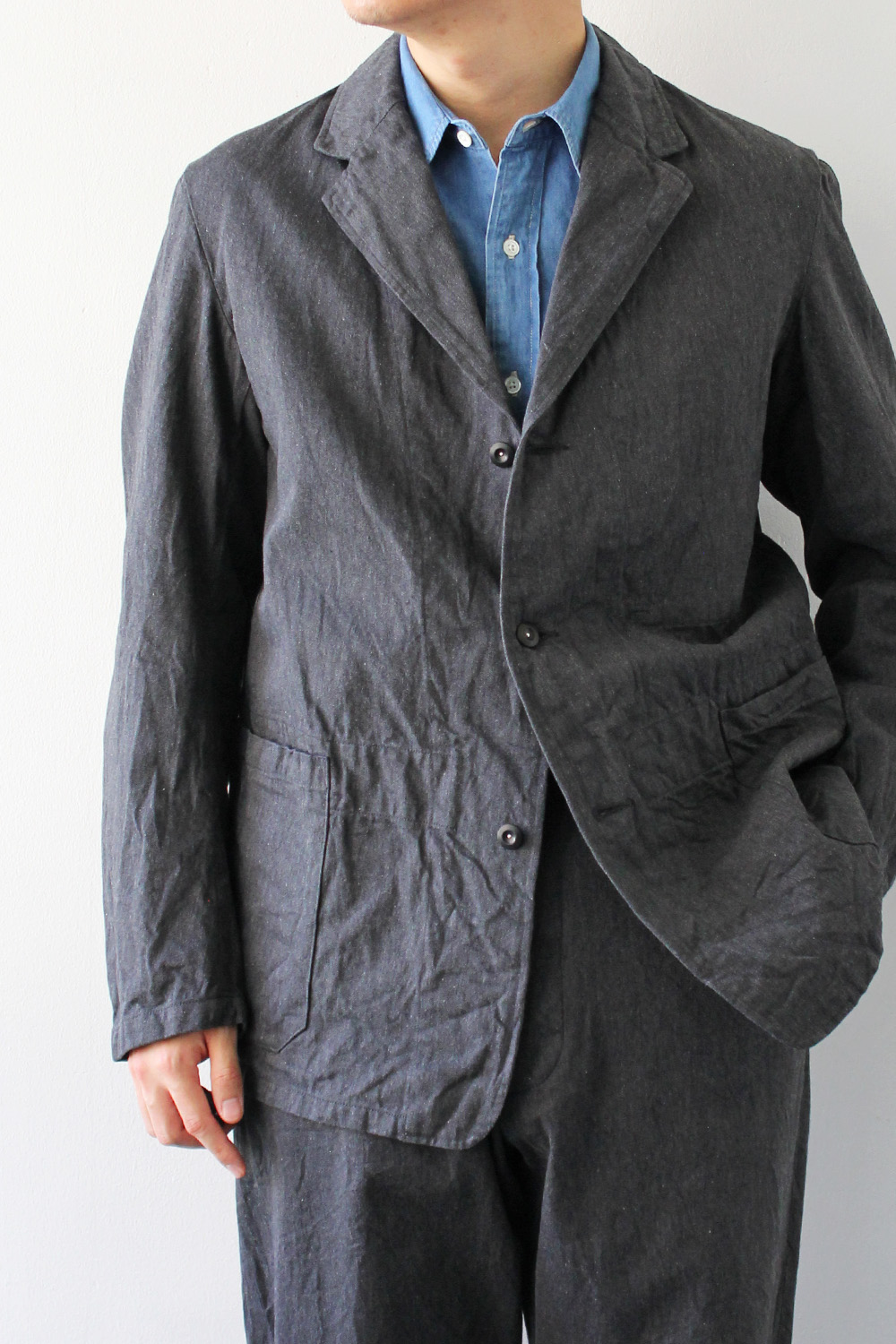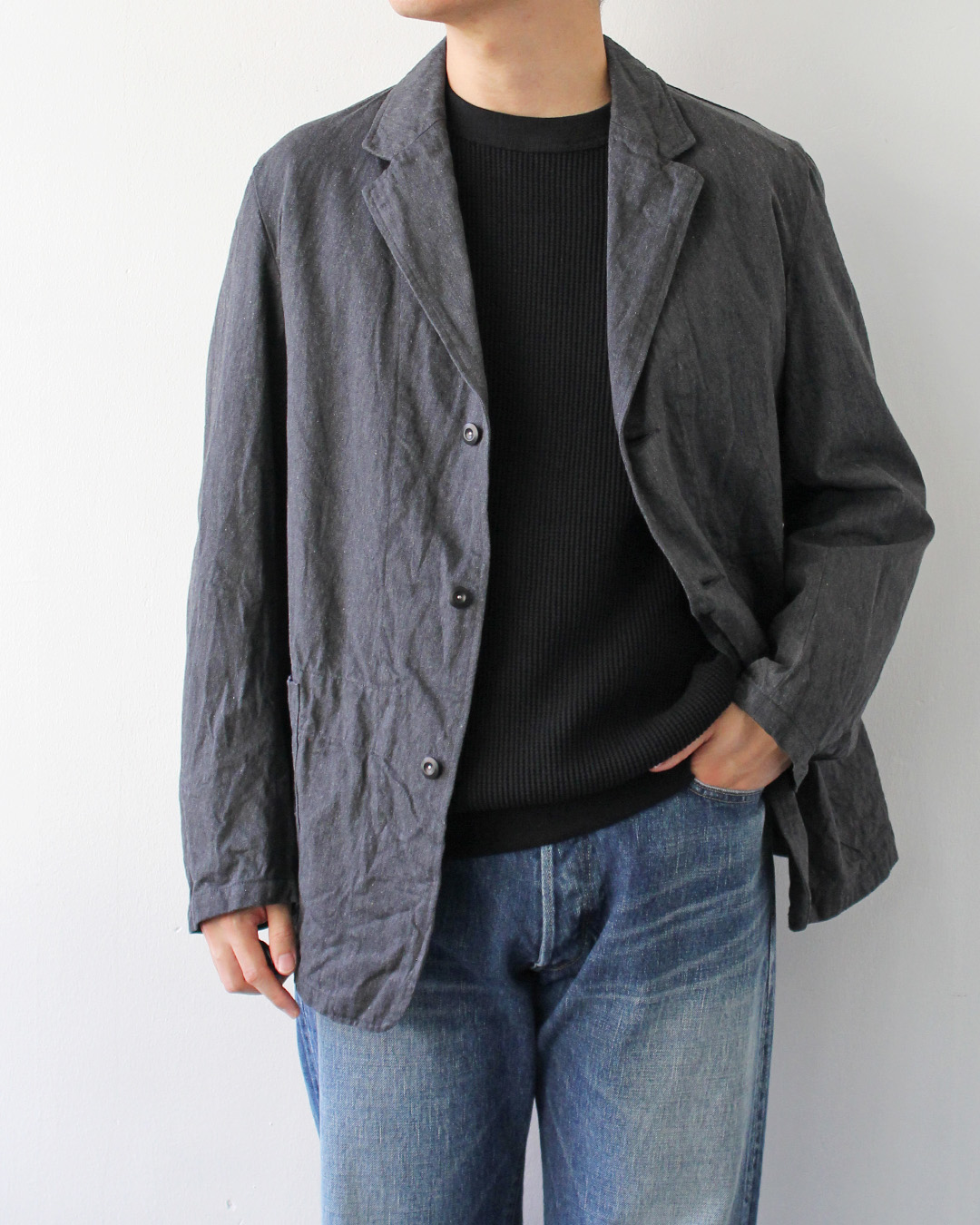 カバーオールとジャケットの中間のようなイメージで、身巾に適度なゆとりがありバックはノーベント、肩は落とし過ぎないのでオフィスカジュアルにも着用いただけるかと。