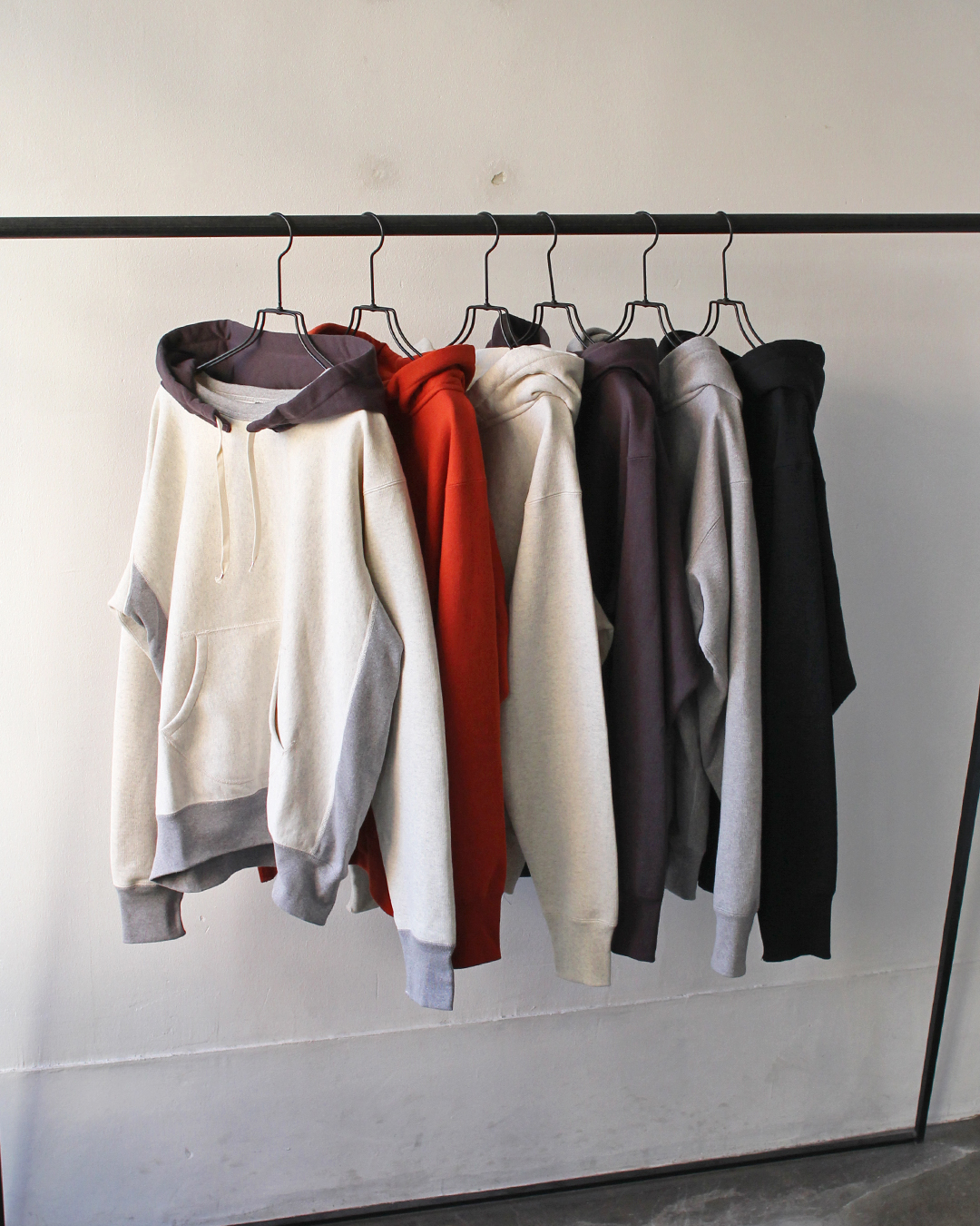 素材は秋冬定番の、表糸にBD糸(空紡糸)を使ったオリジナル裏毛素材を使用。