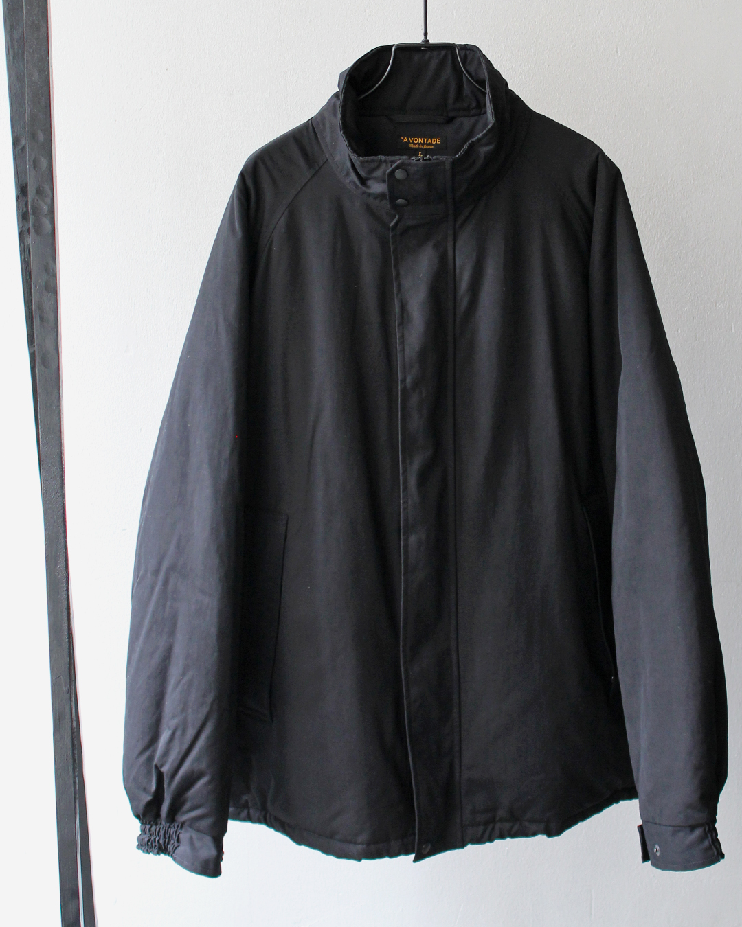 オリジナルでは比翼が首元で止まっていますが、顎まで延長したアレンジが加わっているためジッパーからの風の侵入が少なくなり、首のスナップボタンもデザインのアクセントになっています。