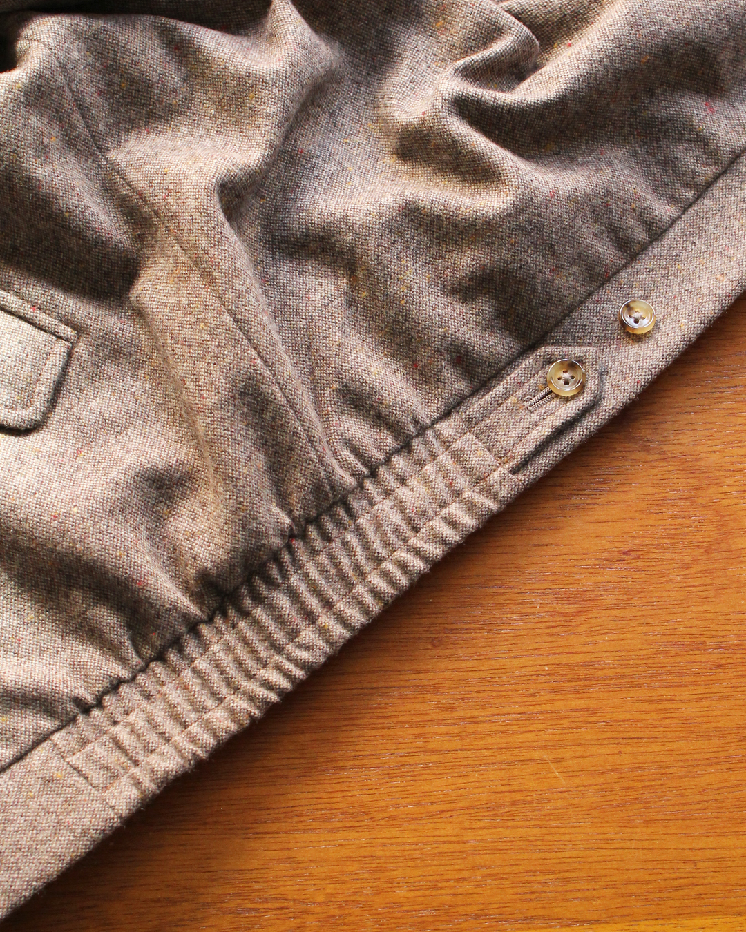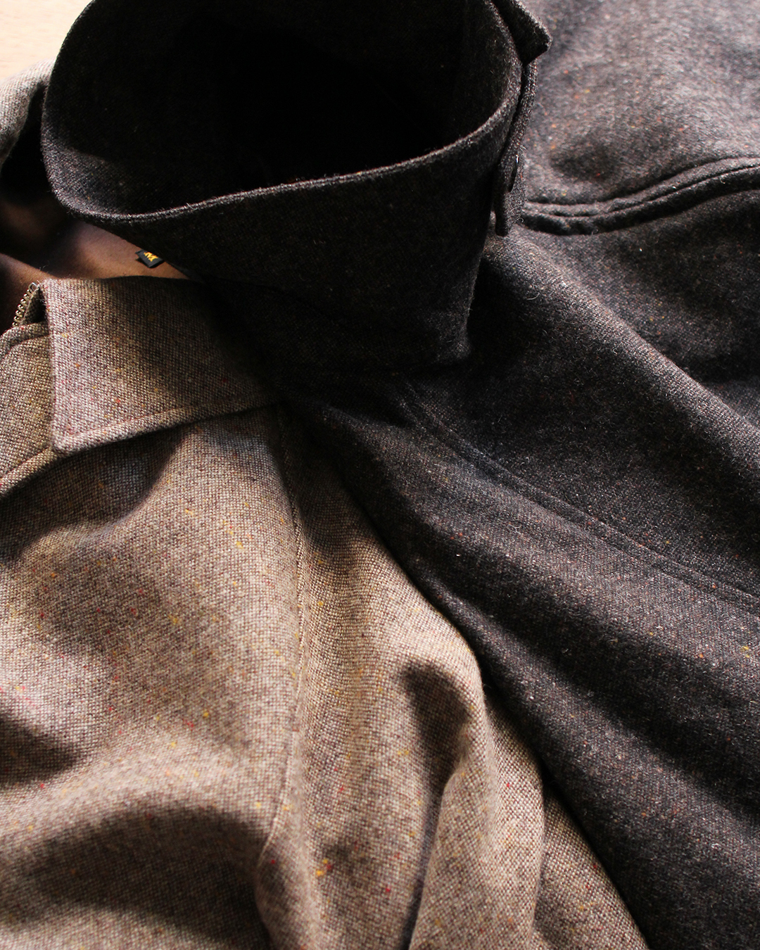 通常のウール生地ですと硬派になりすぎる場合もありますが、カラーネップが入ることでクラシックな中にもポップな印象が生まれ、大人の普段着として取りれやすい一着になっています。