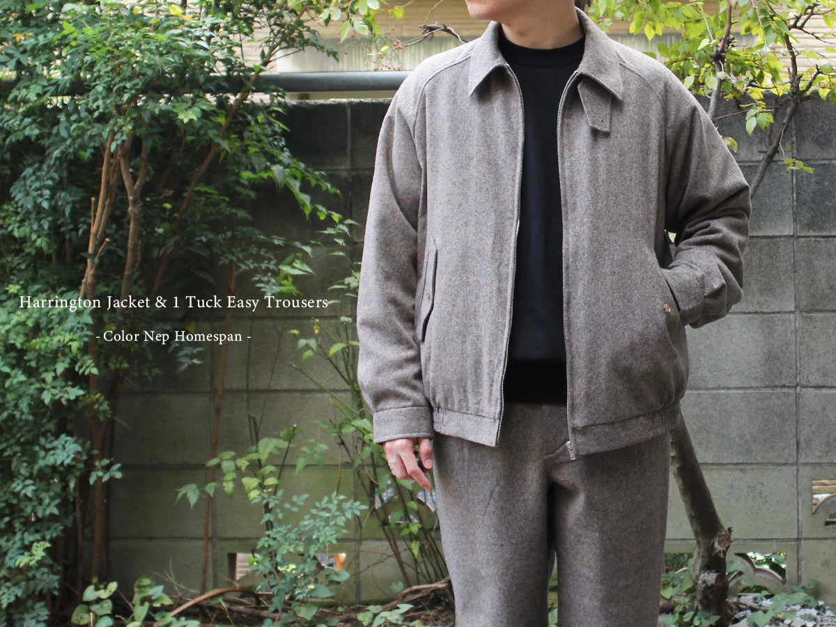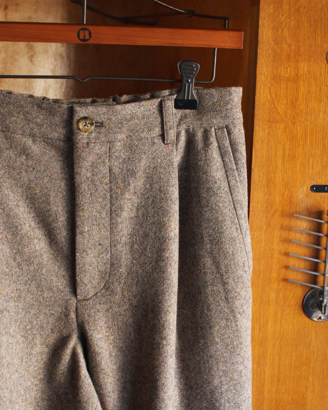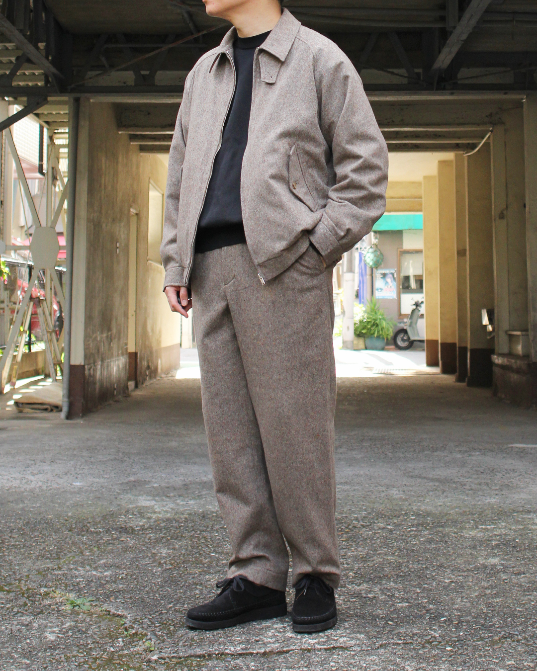 以前紹介したセットアップと同じ仕様のパンツですが、国内2店舗限定でホームスパン生地でリリースとなりました。