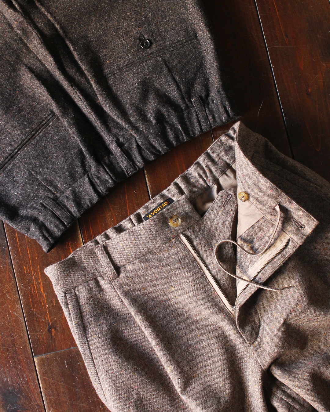 本日は*A VONTADEでは初となる、クラシックなビジュアルの”ホームスパン生地”を使用したアイテムをご紹介させていただきます。