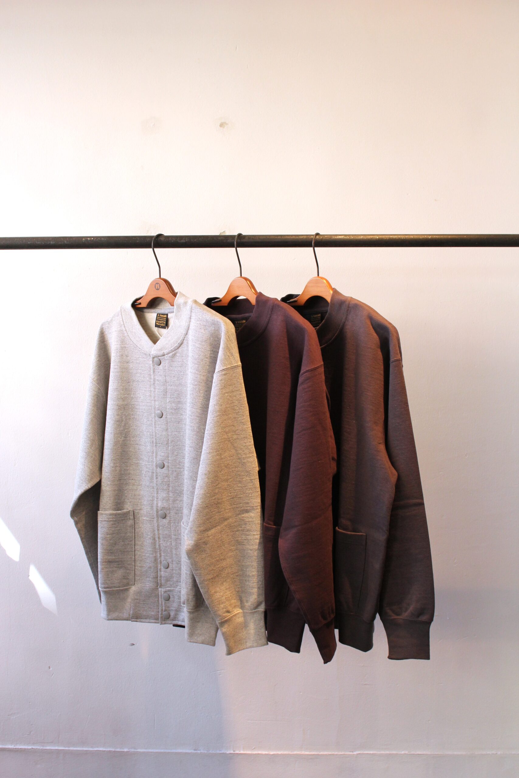 オリジナルで編みたてたハイゲージの裏毛を使用したスウェットカーディガンです。