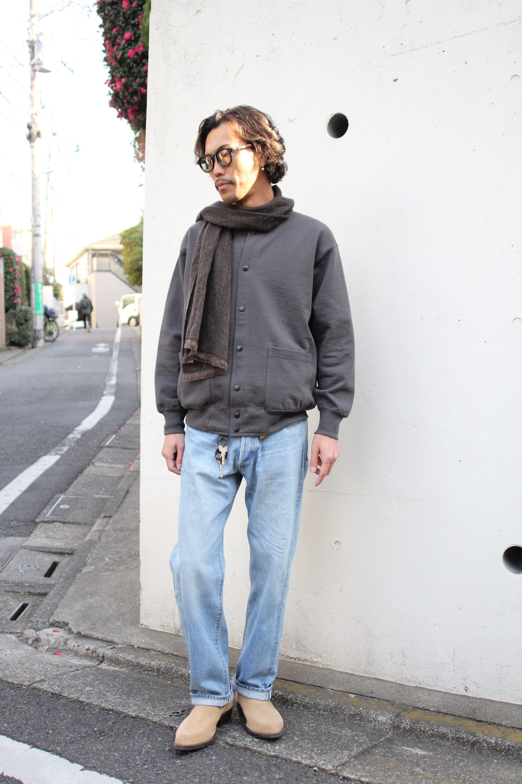 カラーはINK NAVY ,SUMI,GRAY TOPの三色。今回着用しているSUMIはくすみがある色なので、ジーンズは勿論ですが、ベージュのチノパンなどのぱきっとした色との相性も良さそうです。
