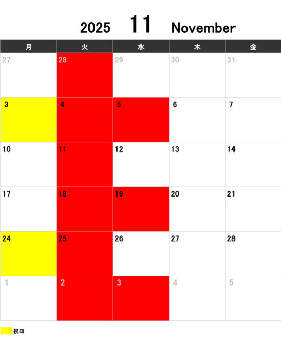 11月の営業に関して